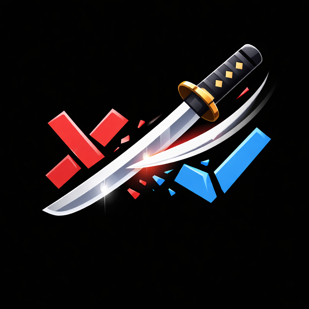Watch the katana sweep through your choices. Tap to stop it, or let fate decide which option gets cut.